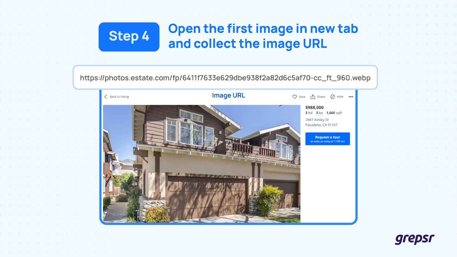 Let’s get back to the topic. After we reach the property detail page, the next thing we do is click on the first image of the property listing, open it in a new tab, and copy the URL.